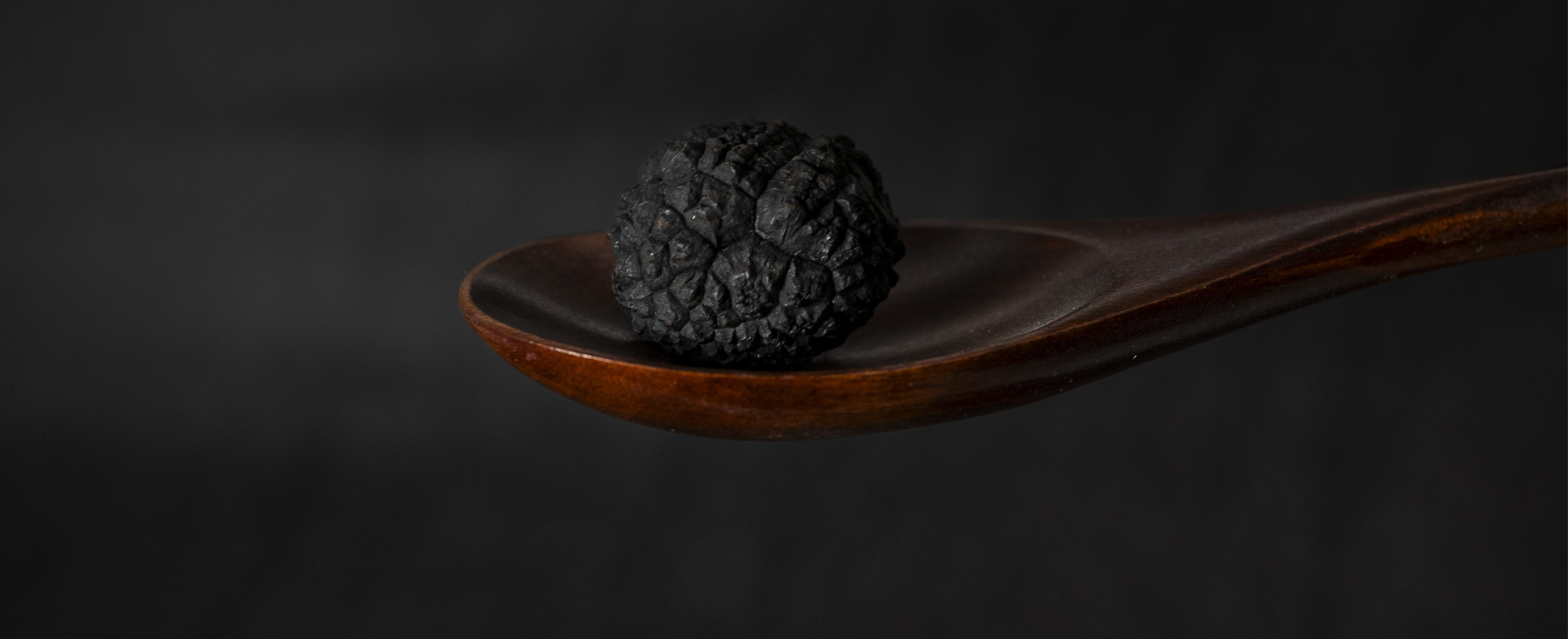 Lighter in flavor and aroma, with hints of hazelnut and mushroom, this truffle is a more accessible option. Its black, bumpy exterior and creamy interior are often used for simple garnishes and lighter recipes